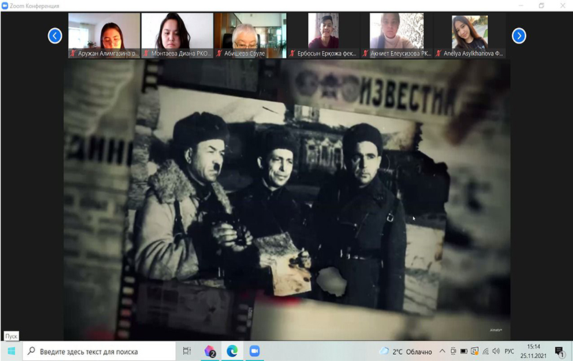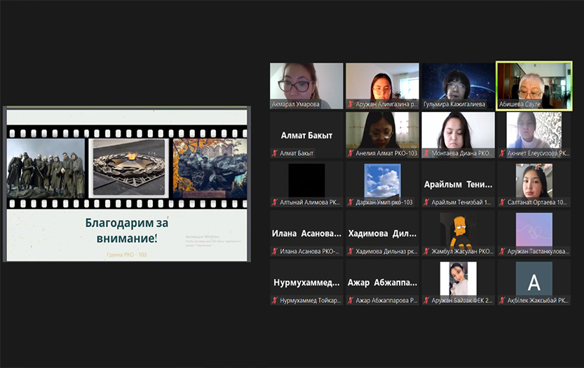 2021 жылдың 25 қарашасында Филология және көптілді білім беру институты «6В01705 - Орыс тілінде оқытпайтын мектептердегі Орыс тілі мен әдебиеті» мамандығының 103 топ студенттері эдвайзер, оқытушы Ақмарал Омарованың жетекшілігімен Батыр-панфиловшылардың 80-жылдығына арналған іс-шара өткізді. Оқушылар 1941 жылғы батырлық оқиғалардың негізгі фактілері көрсетілген презентация дайындады. Студенттер «Жиырма сегіз», «Дубосеково», «Мені күт» өлеңдерін оқыды. Бастамашыл топ гвардияшы-панфиловшылардың ерлігінің тарихи фактілерін объективті түрде көрсететін деректі фильм көрсетті.