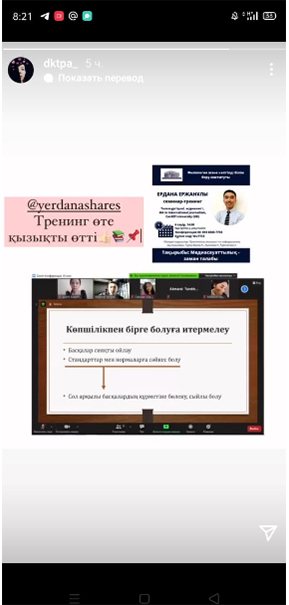 Тренингті ұйымдастырушылар: кафедра оқытушылары Турсынбаева К., Ашимова Н., Туреханова А.