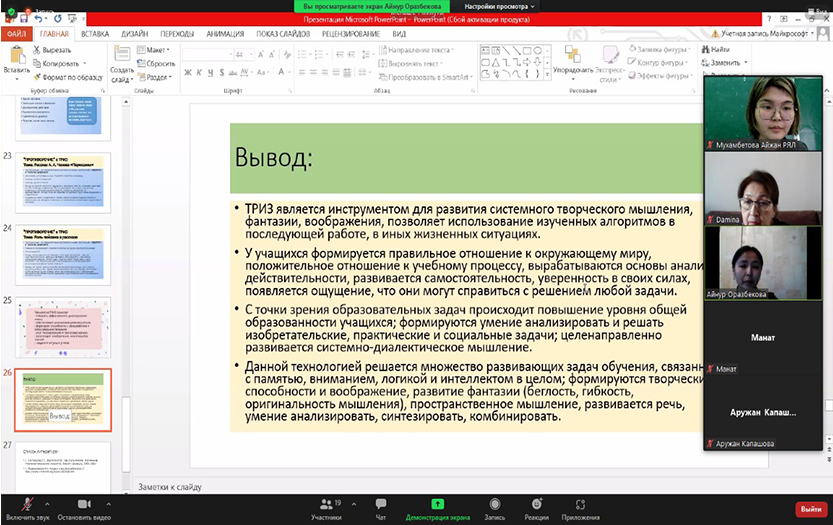Екінші курс магистранттары Мақпал Әділбекова, Шынар Әділбекова және Перизат Егізек баяндамаларында болашақ диссертацияларының түйін тақырыптары айтылды.