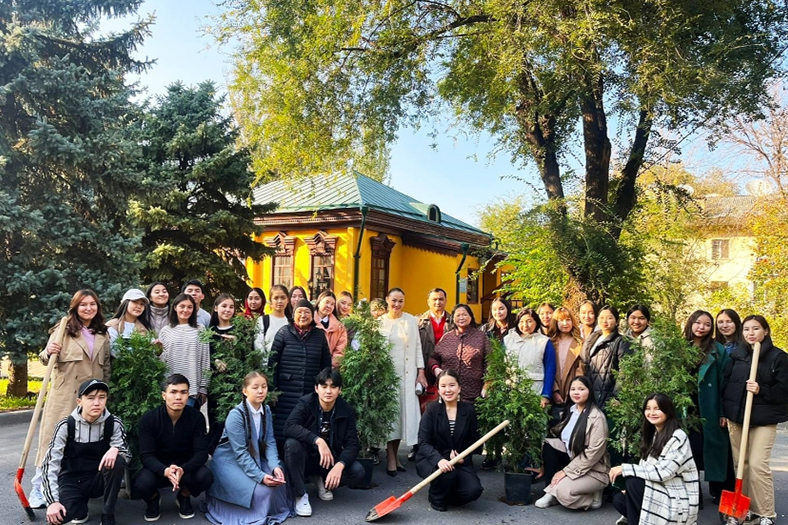 2023 жылдың 16 қазанында Филология институты Академик С.Қирабаев атындағы қазақ тілі мен әдебиеті кафедрасының профессор-оқытушылар құрамы (Гүлбану Қосымова, Жаңалық Балтабаева, Қалбике Есенова, Айман Қобланова, Сауле Нұрғали, Майра Жүніс, Қатира Балабекова) мен студенттері А.Байтұрсынұлы орталығының жетекшісі Роза Бақбергенова ұйымдастыруымен Алаш қайраткері, қазақ тіл білімінің атасы Ахмет Байтұрсынұлы музей-үйі ауласына арша ағаштары мен гүл көшеттерін отырғызды. Бүгінгі шара ұлт ұстазына деген құрметтің жалғасы екеніндігіне тоқталған Институт директоры Алуа Таңжарықова студент-жастарымызға бұл игі істің берер тәлімі мол екенін атап өтті. Сондай-ақ студенттеріміз ұлт ұстазы өлеңдерінен үзінді оқып, арнау тілектерін білдірсе, аталған іс-шара музей жетекшісі Райхан Имаханбет Ахмет Байтұрсынұлының өмірі мен шығармашылығы туралы танымдық дәріс өткізді. Институттың ғылыми істер жөніндегі орынбасары Алмас Найманбаев ғұлама ғалымның еңбектерін зерттеп, зерделеу жастардың міндеті екендігіне тоқталды. Кафедра меңгерушісі, профессор Нағима Ильясова алдағы уақытта бұл байланыс тереңдей түсетінін айта келіп, музей әкімшілігіне алғысын білдірді.