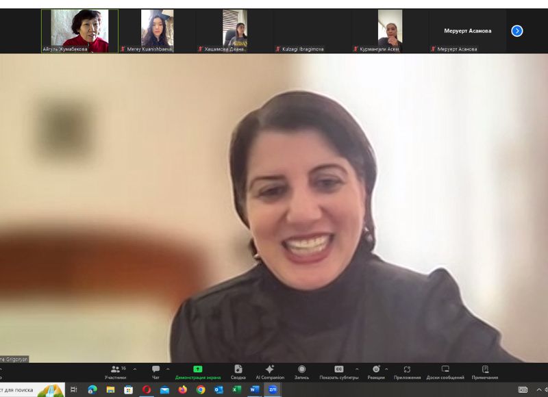 29 наурыз бен 11 сәуір аралығында Абай атындағы ҚазҰПУ Филология институты, шығыс филологиясы және аударма кафедрасының студент-аудармашыларына ағылшын тілінде топтық жұмыс үлгілері тақырыбында Г.В.Плеханов атындағы Ресей экономикалық университетінің №2 шетел тілдері кафедрасының аға оқытушысы Армине Эдуардовна Григорян онлайн-дәрістер оқыды.