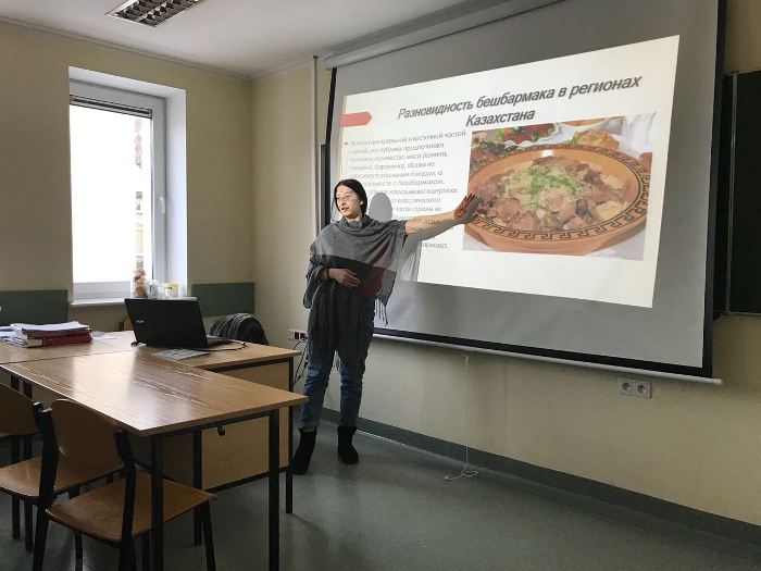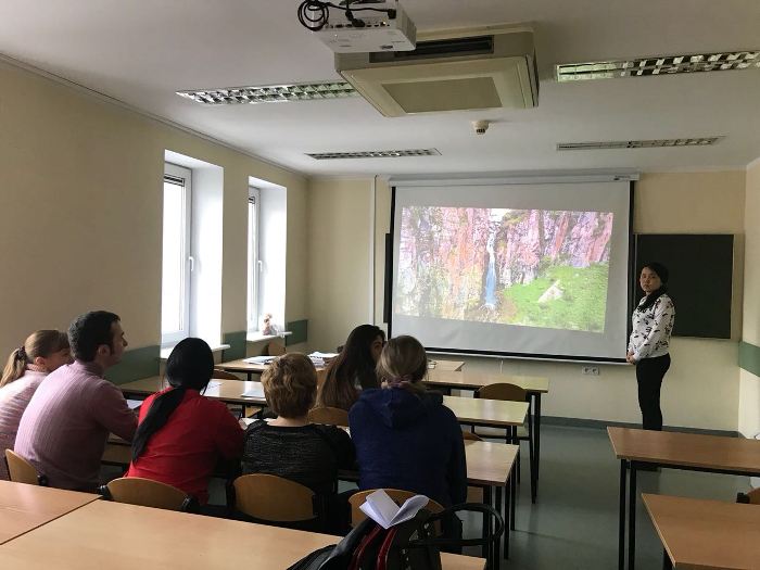 Помор Академиясынынң Неофилология институтында біз өз еліміз туралы презентация көрсеттік. Абай атындағы ҚазҰПУ Филология және көптілді білім беру институтының студенттері поляк достарымызға Қазақстанның көрікті жерлері мен халқымыздың салт-дәстүрлеріміз жайлы айттып берді. Біздің топтастарымыз бен оқытушыларымыз елімізге қызығушылықпен қарады. Қазақстан туралы сұрастырып, тіпті жолдың құны туралы да сұрады.