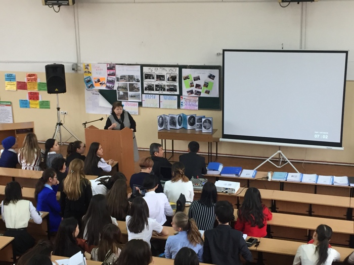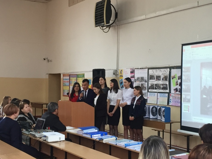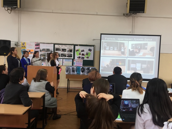 №12 гиманзиясындағы практиканттардың «Студент-практикант өмірінен бір күн» фильм-ролигі аудирорияны қатты қызықтырды. Басқа студенттер жаңа оқыту бағдарламалар туралы, орыс тілі мен әдебиеті сабақтарында қолданылған интерактивті әдістер жайлы және критикалық ойлауды дамыту тәсілдері жөнінде баяндама жасады. Осының бәрі сабақтарда жасалынған қысқа видео, фотолармен, көрнекі оқу құралдарын көрсетумен, схема, кестелер және жазушыларлың портреттерімен қоса жүрді. Сонымен қатар, презентацияға студент-практиканттар туралы ұстаздар мен оқушылардың пікірлері де қосылған.