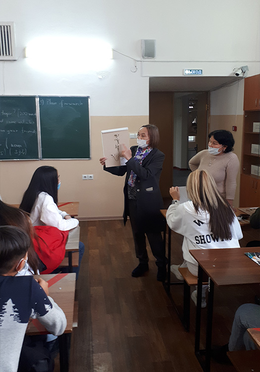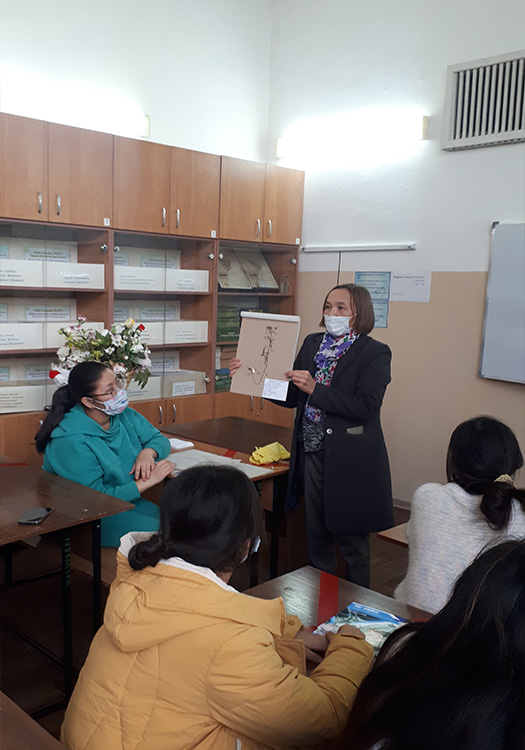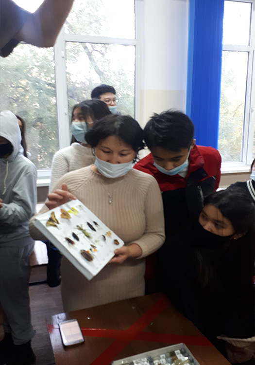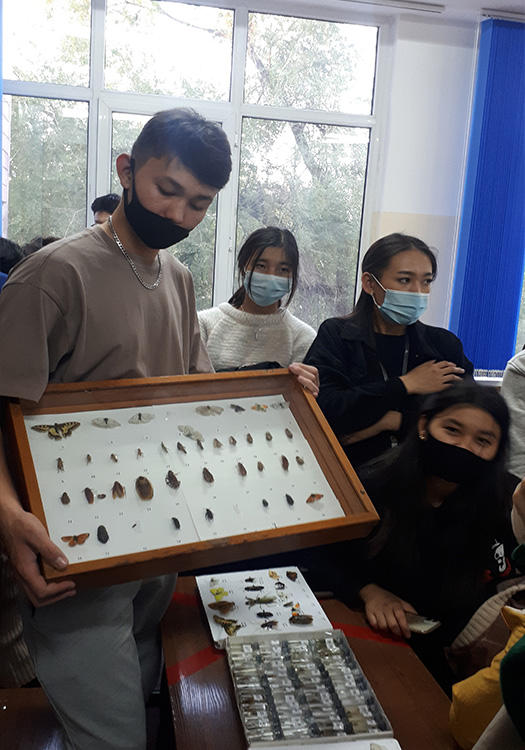 «Биология» БББ тобының аға оқытушылары Эльмира Қауынбаева, Динара Аманбекова бітіруші түлектерге «Ботаника» және «Зоология» пәндері бойынша далалық оқу практикасын өту кезінде жиналған материалдарды: жәндіктердің коллекцияларын, өсімдіктердің гербарийлерін көрсетті.