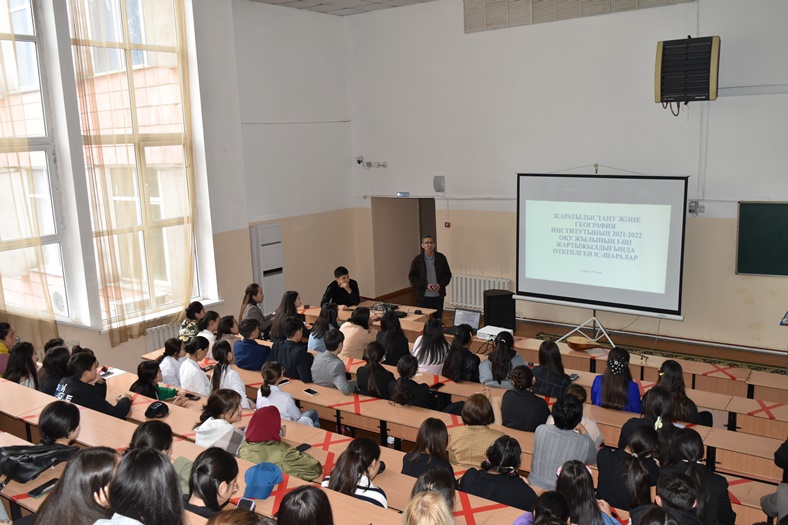 2022 жылдың 21 сәуірінде Жаратылыстану және география институтының маркетинг бөлімінің ұйымдастыруымен орта мектептердің 10-11 сынып оқушыларына кәсіби бағыт-бағдар беру мақсатында «Сенің таңдауың - сенің болашағың» Ашық есік күні өтті.
