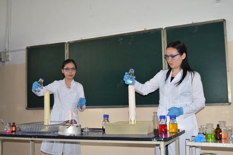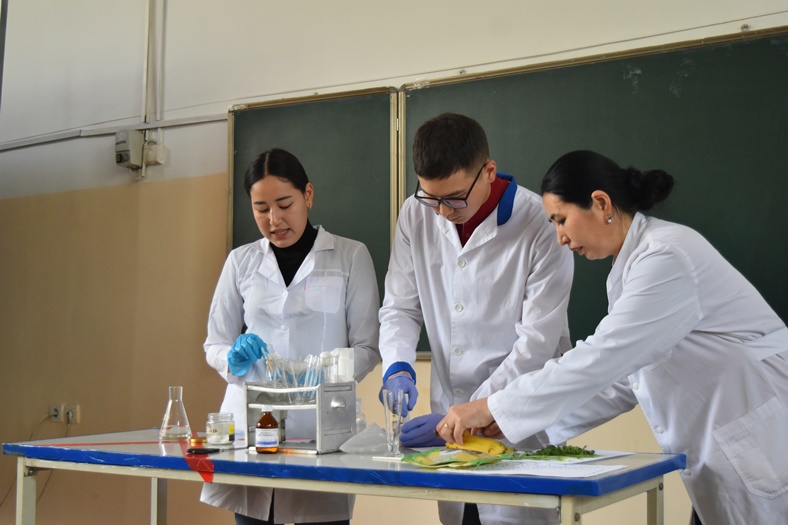 Ашық есік күнінде биология және химия мамандықтарының 2-3 студенттері әртүрлі эксперименттік тәжірибелер көрсетіп, оқушылардың қызығушылықтарын арттырды. Биология бағытында «Бал құрамын анықтау», «Тәтті шырындардың құрамындағы С витаминін анықтау», «Бананның ДНК анықтау» атты эксперименттер көрсетілді. Химиктер «Отты көбік», «Отты шашу», «Пробиркадағы найзағай», «Жанартаудың атқылауы», «Фараон жыландар» атты қызықты тәжірибелер көрсетті.