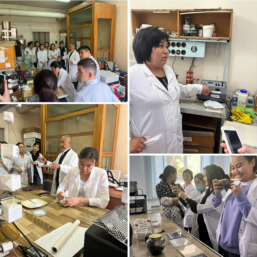 Оқу практикасы барысында әр студент жеке лабораторияларға бөлініп, институттағы ғылыми қызметкерлердің көмегімен әртүрлі жұмыстардың жасалу жолымен танысты. Студенттер өз қызығушылықтарын көрсетіп, болашақта ғылыммен айналысуға деген құлшыныстарын, ойларын білдірді.
