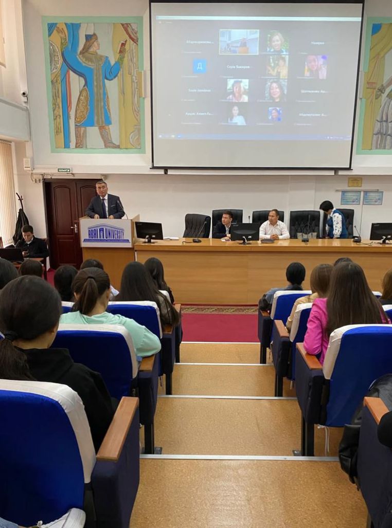 Жиын барысында Қамбар Усипов көптеген мәселелерге тоқталды әсіресе сыбайлас жемқорлыққа қарсы комплаенс қызметінің мәнін түсіндірді. Университет қабырғасындағы сыбайлас жемқорлыққа қарсы іс-қимыл және академиялық адалдық қағидаттарын сақтауға бағытталған іс-шараларға тоқталды. Университеттің кешенді жоспарына сәйкес жүргізілетін сыбайлас жемқорлыққа қарсы іс-қимыл Кеңесінің құзіреттері туралы баяндалды. Сонымен қатар «Сыбайлас жемқорлыққа қарсы іс-қимыл саясатының» ұсынып отырған жаңа жүйесі бар екендігін айтты. Ол жүйе бойынша студенттер қандай да бір туындаған мәселесін университеттің ғимараттары мен жатақханаларына ілінетін QR - кодтар арқылы шығатын сілтемеге жазуға болатындығын жеткізді. Студенттер сыбайлас жемқорлыққа қарсы ескертпелермен танысып өздерінің ойларындағы сұрақтардың жауабын алды.