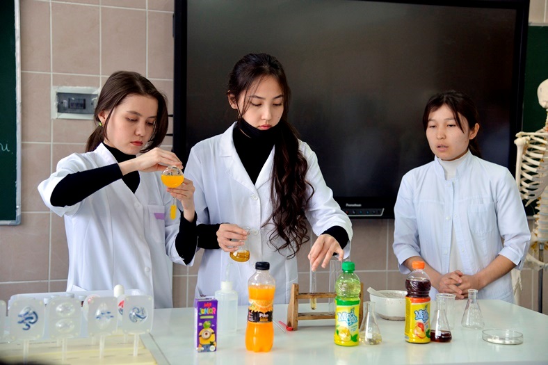 Институттың оқу процесімен, білім алушылардың тыныс-тіршілігімен жақын таныстыру үшін түлектерді кафедраларға экскурсия жасатып, оқу лабораторияларын аралатты. Химия кафедрасының «Sparkle Science of Chemistry» үйірмесінің 2-3 курс студенттері оқушыларға түрлі-түсті фейерверк-от шашу, «Көбікті фонтан», «Химиялық вулкан», «Күміс айна» реакциясы, жалынның түсі сан түрлі болып құбылатын «Жалын сынағы» деп аталатын сапалық реакциялардан тұратын қызықты химиялық тәжірибелерді көрсетті. Биология кафедрасының 2 курс студенттері тәтті шырындар құрамындағы «С» дәруменін анықтау, банан жасушасынан ДНҚ бөліп алу деген эксперименттік тәжірибелерін көрсетті. Қызықты эксперименттік тәжірибелер оқушылардың қызығушылығын арттырды.