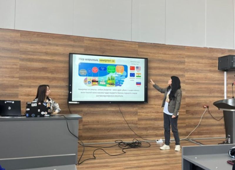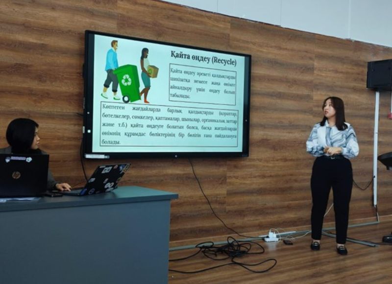 Клубтың экоактивистері Алтынбекова А. мен Жұмағали Н. «3R тұжырымдамасы» және «Климаттың өзгеруі» тақырыптарында презентациялар жасады. Студенттер үлкен қызығушылықпен тыңдап, интерактивті ойындарға белсенді қатысты. Ойын соңында жеңімпаздар арнайы сыйлықтармен марапатталды. ТДМ 12 - жауапты тұтыну және өндіріс, ТДМ 13 - климаттың өзгеруіне қарсы күрес - студенттердің түсінігін тереңдете түсті. Ал, интерактивті ойындар олардың алған білімдерін нығайтты. Тренингті өткізу - сыни және креативті ойлаудың көмегімен әр түрлі экологиялық жағдайлардан балама шығу жолдары бойынша алдарына қойылған міндеттерді шеше алатын ең белсенді студенттерді анықтады.