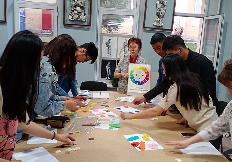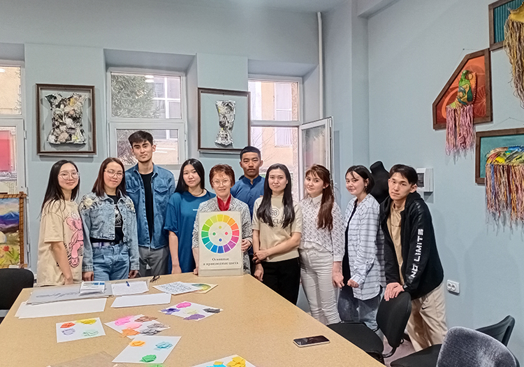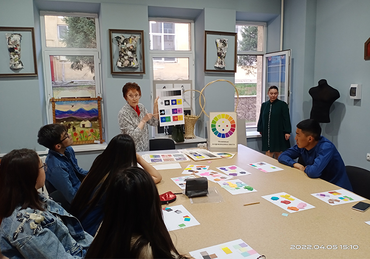 Іс-шара барысында студенттерге түстер үйлесімінің мысалдары келтірілді (қарама-қарсы, туыстас және басқалар), түс композициясы жайлы идеялар кеңейтілді, сонымен қатар әртүрлі тапсырмалар ойын форматында берілді. Мастер-класстан кейін студенттер өздері таңдаған түс шешімдерін талдап, қорытынды жасады.