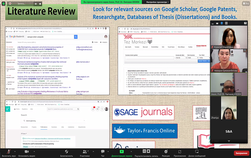 №АР08053283 - «Көркем білім берудегі дәстүрлі және заманауи ұлттық өнердегі экодизайн эволциясы» тақырыбындағы ҚР БҒМ ғылыми жобасы аясында шетелдік кеңесші PhD докторы, доцент Рамазан Ердем жоба мүшелеріне (Сманова А.С., Бекболатова К.М., Жиренов С.А., Небесаева Ж.О., Әлжанов Ғ.М., Ермаханбетова А.М.) арнап 15.05.2022-21.05.2022 ж. аралығында онлайн/офлайн форматта смарт технологиялар бойынша шеберлік сынып жүргізіліп, «Writing Scopus paper» тақырыбында дәрістер оқылды.