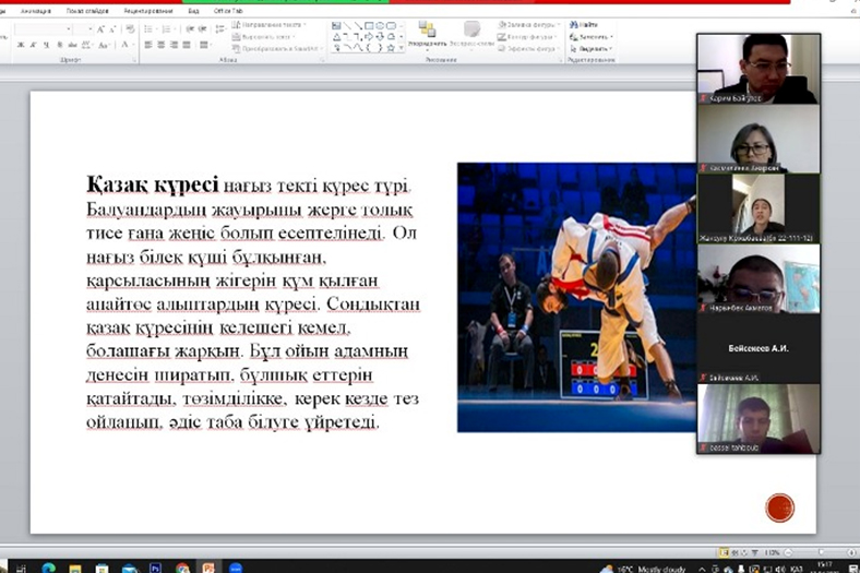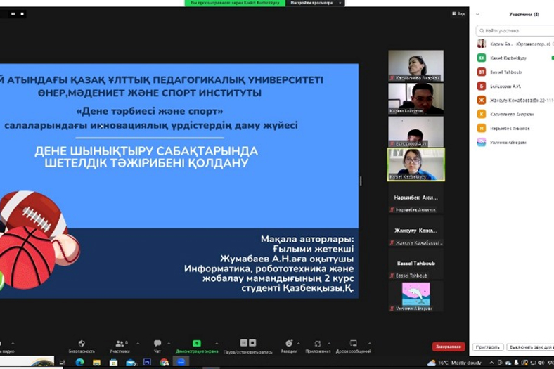 Конференцияда Белград қаласы Жоғары спорт колледжінің аға оқытушысы Владимир Пузович (Сербия) пен Apeiron жалпыеуропалық университетінің спорт факультетінің деканы Velibor Srdic (Велибор Сырдыч) (Босния және Герцоговина), Мукими атындағы Қоқан мемлекеттік педагогикалық институтының доценті Зулхумор Умарова (Өзбекстан) онлайн форматта баяндама жасады.