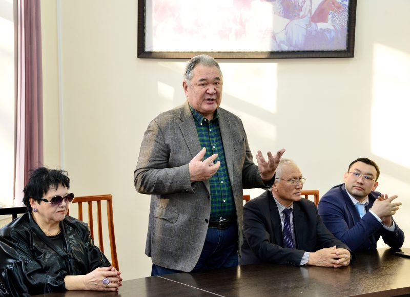 Шараға педагогика ғылымдарының докторы, профессор Берікжан Әлмұхамбетов, қызметкерлер Кәсіподақ ұйымының төрағасы Мұхтар Ибраимов, Түлектер қауымдастығының жетекшісі, ҚР Мәдениет саласының үздігі Болатбек Нұрбатыров пен Өнер факультетінің деканы Карим Байгутов қатысты.