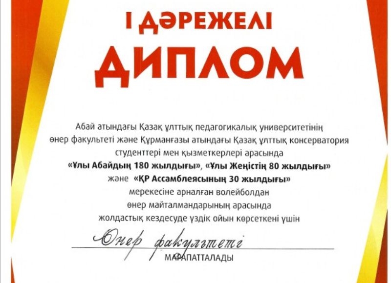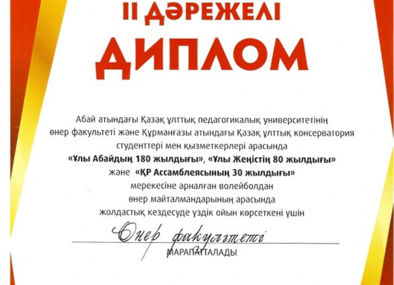 Абай атындағы ҚазҰПУ мен Құрманғазы атындағы ҚазҰК-ның студенттері мен қызметкерлері арасында волейболдан жолдастық кездесу өтті 2025 жылғы 5 сәуірде Абай атындағы Қазақ ұлттық педагогикалық университетінің Өнер факультеті мен Құрманғазы атындағы Қазақ ұлттық консерваториясының студенттері мен қызметкерлері арасында волейболдан жолдастық кездесу ұйымдастырылды. Іс-шара Ұлы Абайдың 180 жылдығы, Ұлы Жеңістің 80 жылдығы және Қазақстан Республикасы Ассамблеясының 30 жылдығына арналған мерекелік шаралар аясында өтті.