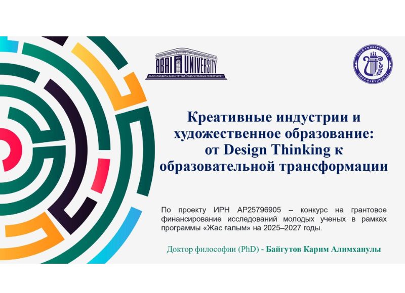 «Жазғы мектеп – 2025: «Креативті индустриялар және көркем білім» дәрісі Абай атындағы Қазақ ұлттық педагогикалық университеті ұйымдастырған «Жазғы мектеп – 2025» шеңберінде Өнер факультетінің деканы, философия докторы (PhD) Карим Байгутов «Креативті индустриялар және көркем білім: Design Thinking-тен білім беру трансформациясына дейін» тақырыбында дәріс оқыды.