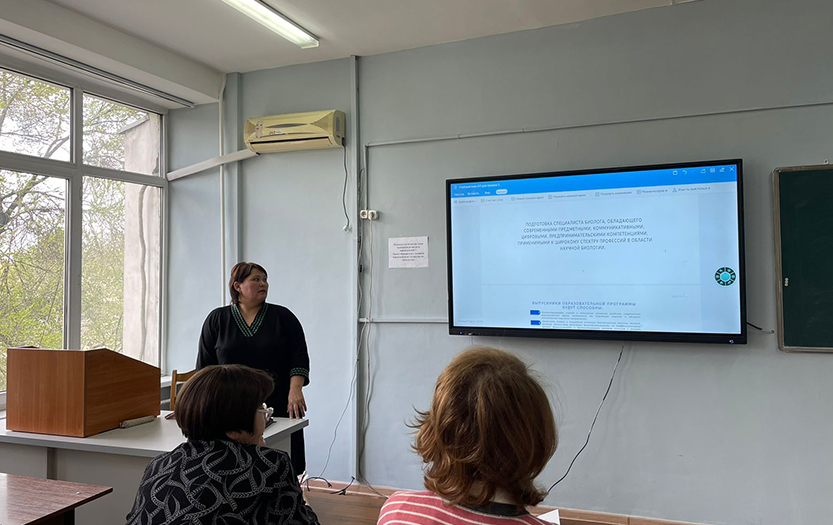 2023 жылғы 19 сәуірде Жаратылыстану және география институтының биология кафедрасында 2023/2024 оқу жылына арналған білім беру бағдарламалары («6В01513-Биология», «6В01522-Биология-География», «6В05101-Биология», «7М01519-Биология», «7М01513-Биология», «7М05101-Биология», «8D01513-Биология», «8D05101-Биология») талқыланды. Талқылауға кафедраның профессор оқытушылары және Қ.Қатықбаева атындағы №168 мектеп-гимназия директоры М.С. Тайкенов, № 178 мамандандырылған лицей директоры К.Х. Шадиев, Микробиология және вирусология институтының ғылыми қызметкері PhD Г. Спанкулова қатысты.
