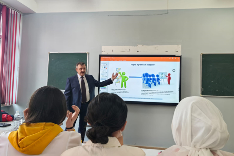 2023 жылдығ 23-27 қазанында Абай университеті Жаратылыстану және география институтында Мәскеу қалалық педагогикалық университеті (Ресей) биология және адам физиологиясы кафедрасының меңгерушісі, профессор Сергей Суматохин «Биология мен биологиялық білім берудегі өзекті мәселелер» атты тақырыпта семинар өткізді. Іс-шараға биология кафедрасының «8D01513-Биология» мамандығының 3-курс докторанттары: Аубакир Айдана, Ибадулла Сымбат, Кауынбаева Эльмира және 4 курс студенттері қатысты. Семинар барысында. С.С. Суматохин «TIMSS және PISA халықаралық зерттеулерінің нәтижелері бойынша оқу жетістіктерін бағалау» тақырыбында өзекті де маңызды мәселелерді талқылады. Аубакир Айдана «Биология сабақтарында ақпараттық технологияларды пайдалану арқылы білім алушылардың цифрлық сауаттылығын қалыптастыру әдістемесі» тақырыбында баяндама оқыды.