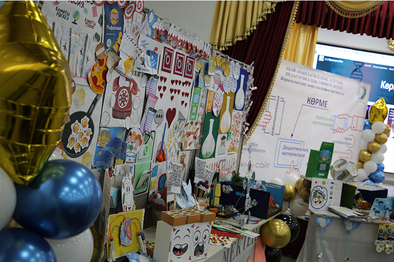 Студенттер LED экраннан педагогикалық іс-тәжірибе барысында өткен ашық сабақтарының үзінділерін, әр мектепте ұйымдастырған көрмелерінің бейнежазбаларын, STEM технология материалдарын және дидактикалық материалдар топтамаларын «ЖГИ практика сайты» парақтарынан көрсетті. Бұған қоса 4 курс білім алушылары оқу үрдісіне қолдан жасаған әртүрлі дидактикалық материалдар топтамасын көрмеге ұсынды. Көрмеге студенттер мен мектеп оқушылары белсене қатысып, өз өнерлерін көрсетті.