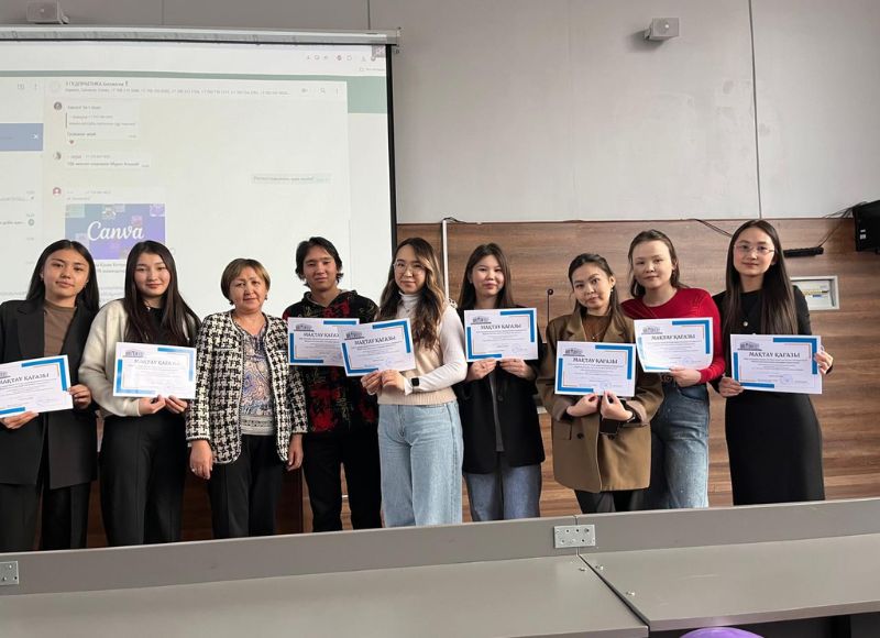 Конференцияда практикаға жауапты тұлға Гүлжанат Камиева студенттерге деканат пен білім беру мекемелерінің басшылары берген мақтау қағаздарын табыс етті.