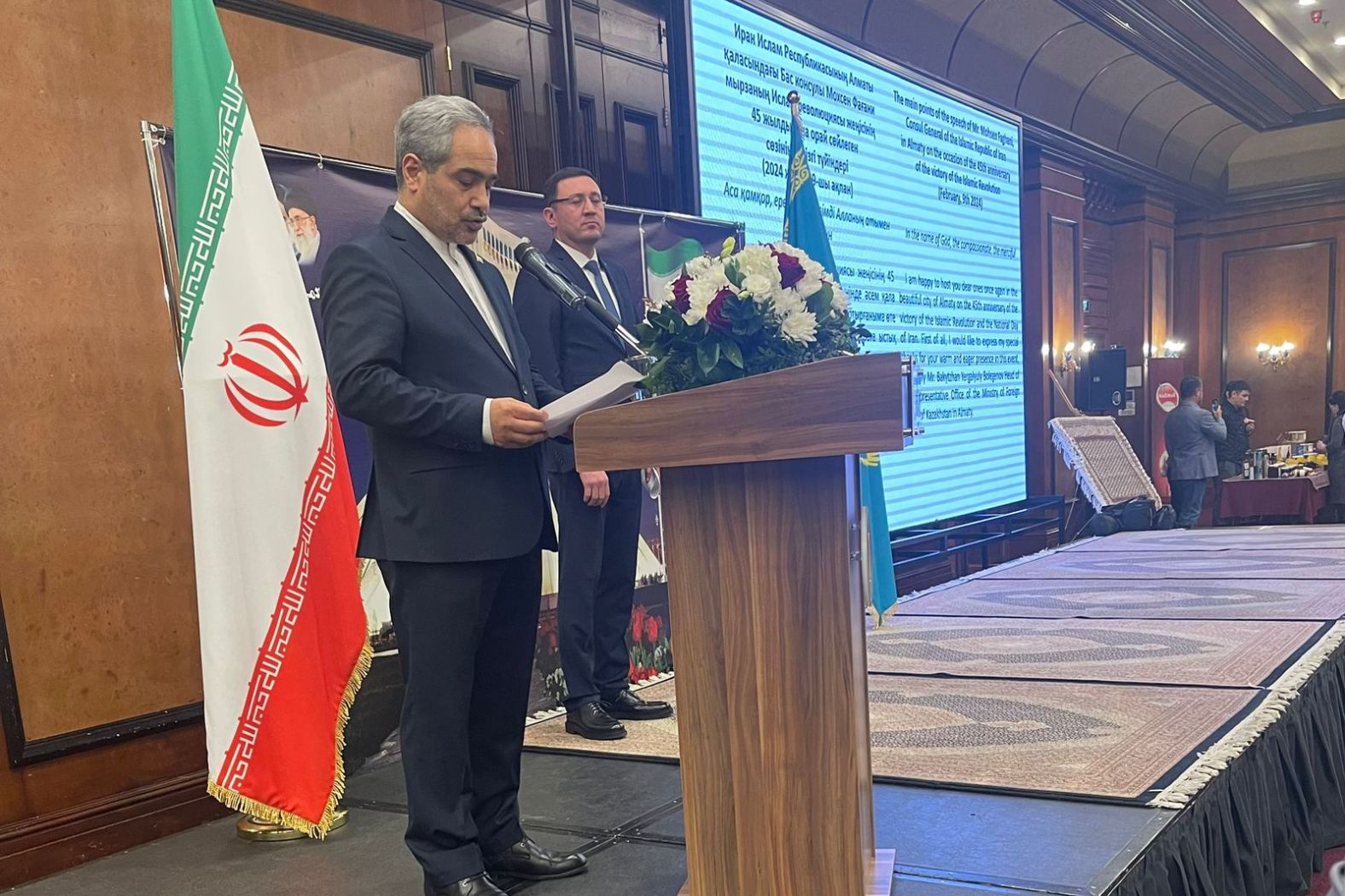 Иран Ислам Республикасының Бас консулы Мохсен Фағанимен кездесу 2024 жылдың 9 ақпанында Иран Ислам Республикасының Ұлттық күні мен Ислам Революциясының 45 жылдық мерейтойына орай Иран Ислам Республикасының Алматы қаласындағы Бас консулы Мохсен Фағанидің арнайы шақыртуымен Абай атындағы ҚазҰПУ-дың Тарих және құқық институты саясаттану және әлеуметтік-философиялық пәндер кафедрасының меңгерушісі Жомарт Симтиков және осы кафедра оқытушысы Нұрлан Орынбеков салтанатты қабылдауына қатысты. Салтанатты шараға екі елдің сыртқы істер министрліктерінің өкілдері де қатысты. Кездесуде Иранның соңғы жылдардағы жетістіктері мен екі елдің қарым-қатынасы талқыланды. Екі мемлекет арасындағы достық, құрмет, парасат пен ынтымақтастықтың айғағына айналған шара аясында Иран Ислам Республикасының ұлттық қолөнер бұйымдарының көрмесі де болып өтті. Иранның Бас консулы Қазақстанмен қарым-қатынасты дамыту өз мемлекетінің сыртқы саясаты саласындағы басымдықтардың бірі ретінде қарастырылатынын атап өтті.