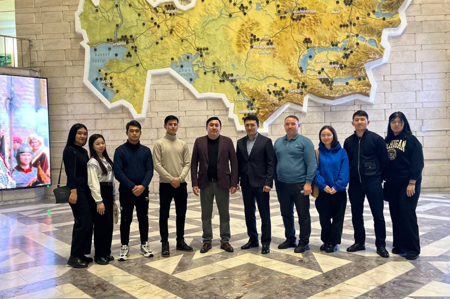 2024 жылдың 19 ақпанында Тарих және құқық институты саясаттану және әлеуметтік-философиялық пәндер кафедрасының 2 курс «8D03102-Мәдениеттану» мамандығының докторанттары Н.Манапбаев, О. Бурибеков, Б. Сайнанов «6В01707- Ұйғыр тілі мен әдебиеті-ағылшын тілі» мамандығының 2 курс студенттеріне Қазақстан Республикасы Мемлекеттік орталық мұражайына рухани-мәдени саяхат ұйымдастырды.