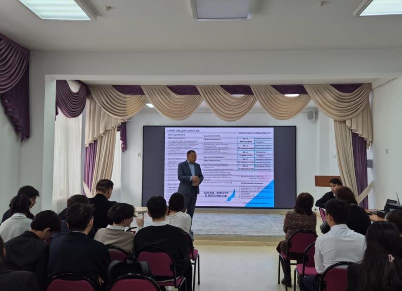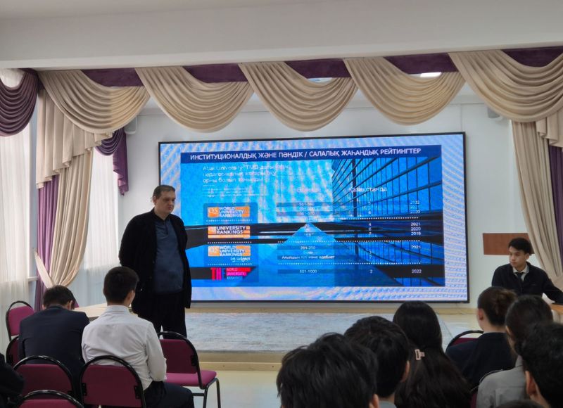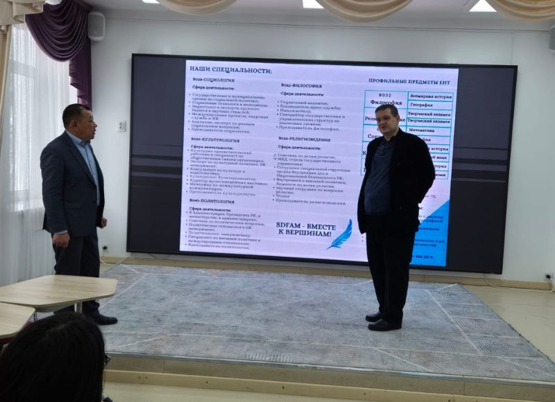 Кәсіби бағдарлану адамның кәсіби бағдар алуының негізі ретінде 2024 жылғы 6-12 желтоқсан аралығында Тарих және құқық факультеті саясаттану және әлеуметтік-философиялық пәндер кафедрасының оқытушылары Т.Ф. Дауылбаев және А.Д. Мейірманов Алматы қаласындағы №81 мектеп-гимназиясының 11 сынып оқушыларымен және мұғалімдерімен кездесу өткізді. Кездесу барысында түлектерге мамандықты қалай таңдау керек, өздерін кәсіби және әлеуметтік тұрғыдан жүзеге асыруға мүмкіндік беретін қажетті білім мен дағдылар жиынтығына ие болу үшін не істеу керектігі түсіндірілді. Сондай-ақ болашақ студенттерге мамандық таңдау бойынша кеңестер, сұрақтарына жауаптар беріліп, жадынамалар таратылды.