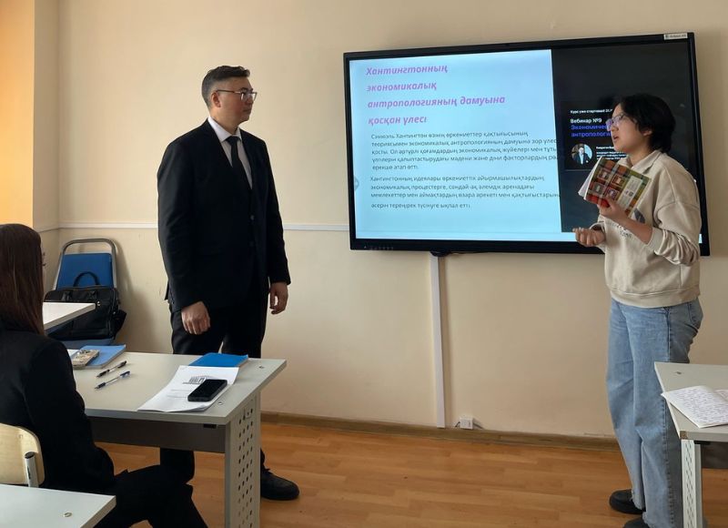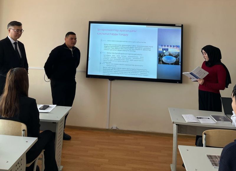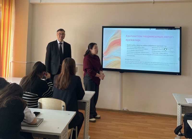 Ашық сабақ барысында студенттер арасында Хантингтон идеясының негізгі тұжырымдамасы, экономикалық-әлеуметтік, мәдени-тарихи және өркениеттердегі айырмашылықтар, ұқсастықтар және болашақта болуы мүмкін 5 қақтығыс туралы пікірталас орнатылды.