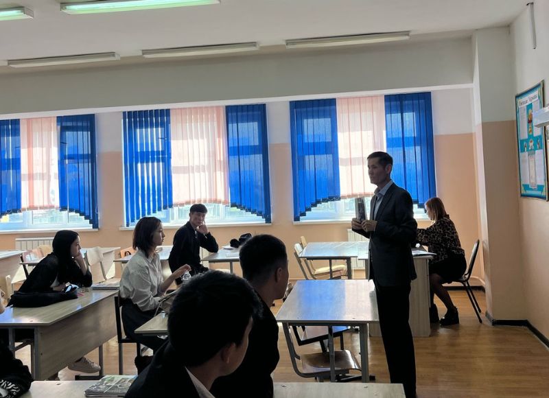 Абай университетінің оқытушысы оқушыларға кәсіптік бағдар бойынша кеңестер берді