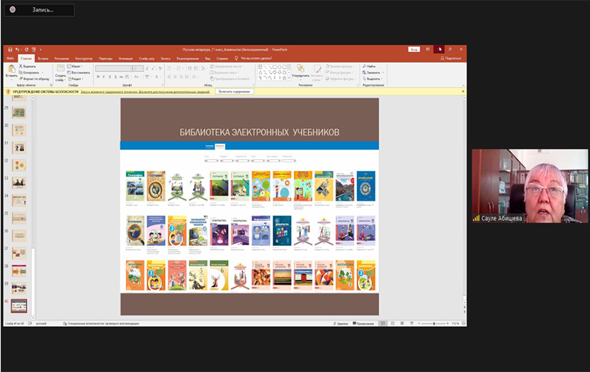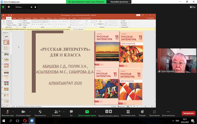 Кездесу тақырыбы 2020 жылы «Алматы кітап» баспасында басылып шыққан жаңартылған бағдарлама бойынша жалпы білім беретін мектептің қоғамдық-гуманитарлық бағытындағы 11-сыныпқа арналған «Орыс әдебиеті» оқулығының құрылымы мен мазмұны туралы әңгіме болды.