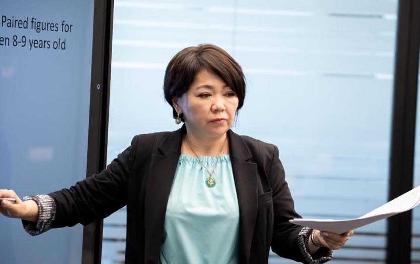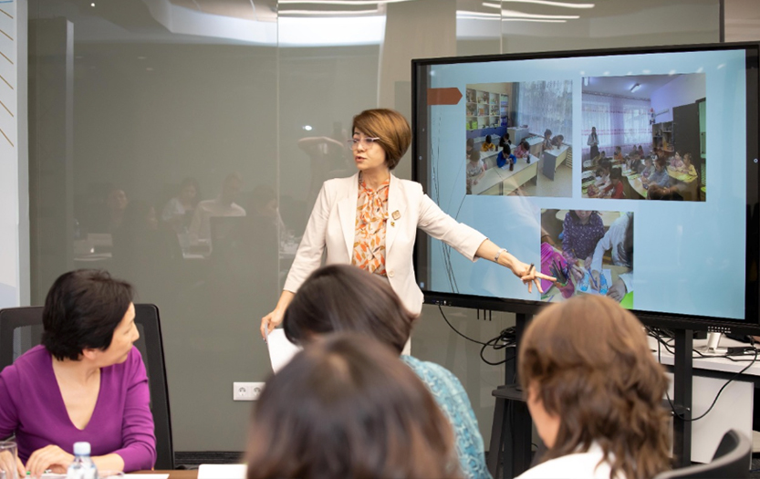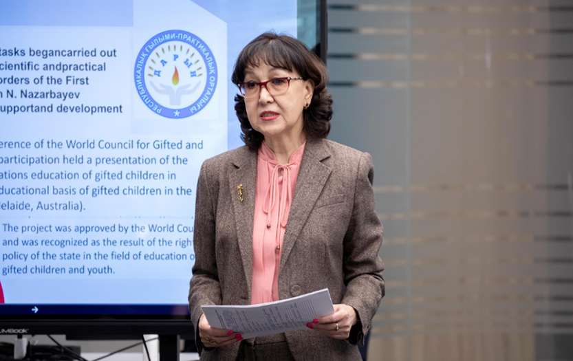 Одан кейін психология ғылымдарының докторы Ақмарал Сатова қазіргі оқушылардың қабілеттерін диагностикалаудағы инновациялық тәсілдері жайында сөз қозғап, ұсыныс-пікірін жеткізді.