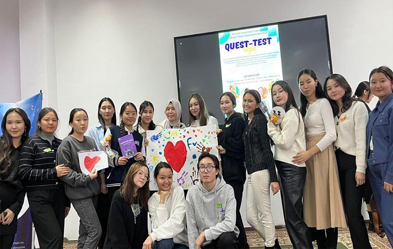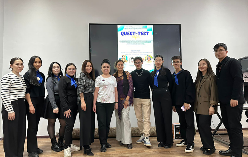 Жалпы және қолданбалы психология кафедрасының ұйымдастырушылары мен студенттері коммуникация, креативтілік және сыни ойлау қабілеттерін дамытуға арналған қызықты ойындар өткізді. Бұл қабілеттерді әлемдік қоғамдастық ХХІ ғасырдың негізгі дағдылары ретінде таныған. «QUEST-TEST» ойыны осы дағдылардың психологиялық аспектілеріне, сондай-ақ бірінші курс студенттерін біріктіруге және бейімдеуге бағытталған. Ойын барысында студенттер көптеген жарқын әсерлерге бөленіп, психологиялық-педагогикалық құзыреттілікті жетілдіруге деген мотивация алып, керемет көңіл-күйге ие болды.