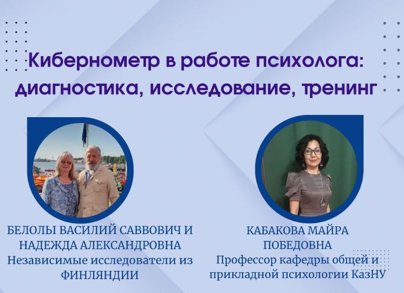 Психолог жұмысындағы кибернометр: диагностика, зерттеу, тренинг 2024 жылдың 10 қыркүйегінде Абай атындағы ҚазҰПУ Педагогика және психология факультетінің жалпы және қолданбалы психология кафедрасы «Психолог жұмысындағы кибернометр: диагностика, зерттеу, тренинг» атты халықаралық деңгейдегі сарапшылардың және кафедраның профессор-оқытушылар құрамы, студенттері, магистранттары мен докторанттарының қатысуымен шеберлік сыныбын ұйымдастырды.