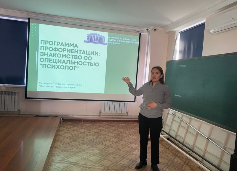 2024 жылғы 30 қарашада Абай атындағы Қазақ ұлттық педагогикалық университеті жалпы және қолданбалы психология кафедрасының оқытушысы Кунслу Тусубекова және «7М03118 - Психотерапия негіздерімен денсаулық психологиясы» мамандығының 1-курс магистранты Аружан Смағұлова профессор Рузуддинов атындағы жоғары медициналық-стоматологиялық колледжінің психологы Айжан Успановамен бірлестікте студенттерге арналған кәсіптік бағдар беру іс-шарасын өткізді.