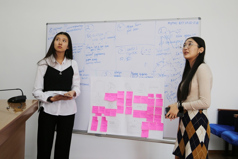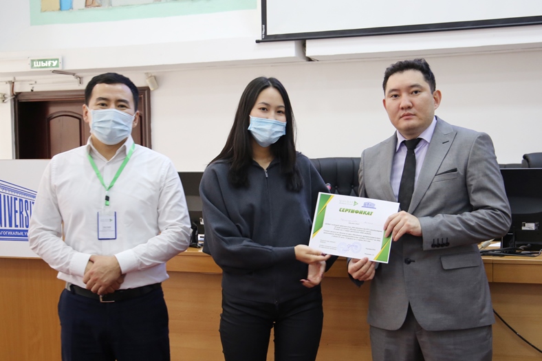 «Жастар кәсіпкерлігі» курсы бойынша қатысушы студенттердің қорытынды жұмысын университеттің әлеуметтік даму жөніндегі проректор Шыңғыс Нұрланов, әкімшілік және қаржы қызметі жөніндегі проректор Клара Исакова, «Qoldaý» кәсіпкерлік орталығы жауапкершілігі шектеулі серіктестігі Оқыту департаменті директоры орынбасары Нурлыбек Тлеулиев бағалап, қатысушыларды арнайы сертификатпен және ынталандыру сыйлықтарымен марапаттады.