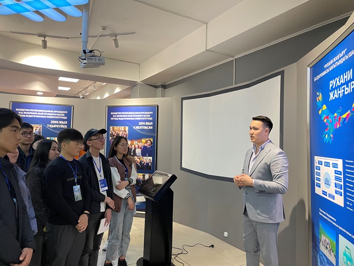 Қабылдау және рекрутинг кеңсесінің маманы Лашын Уразгалиева университетке қабылдау ережелері, білім алу ерекшеліктері туралы толық ақпарат берді. Мектеп түлектері оқу орнының мамандықтарымен, оқуға түсу және оқуға қойылатын талаптармен танысты, мұражайды, оқу залын, аудиторияларды аралады. Әр оқушы өз сұрағына жауап ала алды.