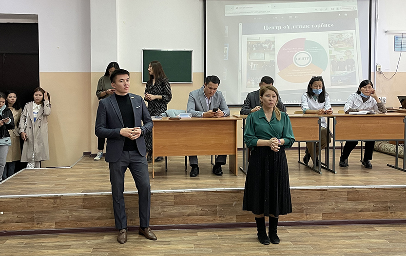 Ұлттық тәрбие орталығы Оразалы Досбосынов атындағы жас ақындар мектебінің кординаторы Шұғайып Сезімхан таныстырып, студенттердің арасында айтысқа қатысқысы келетін студенттерді орталыққа шақырды.