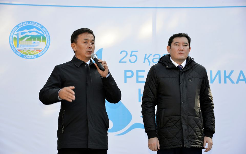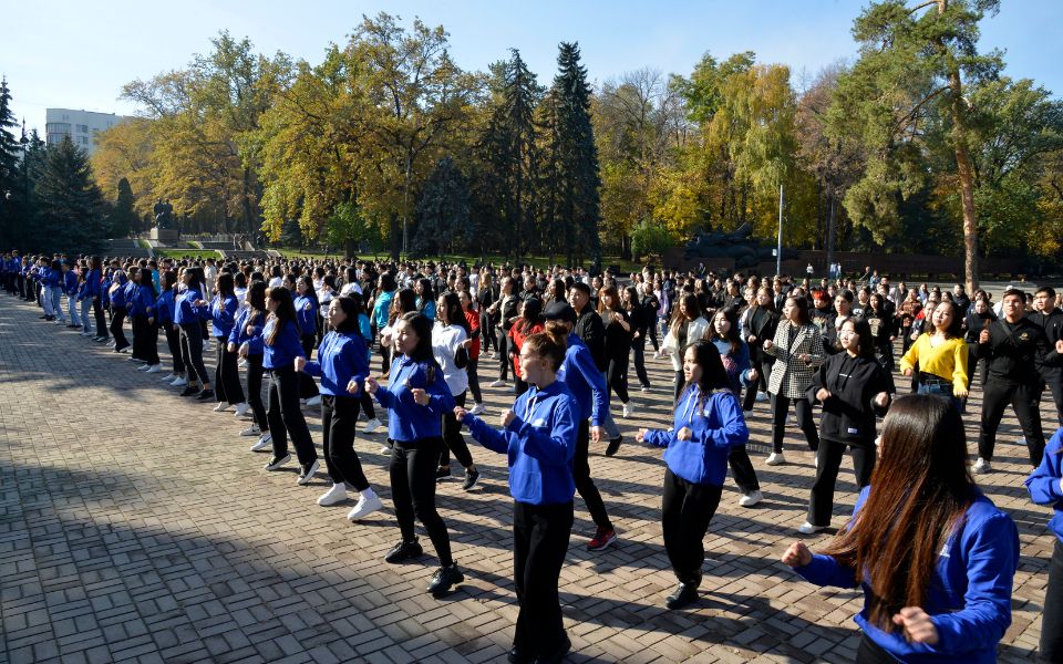 Бүгін 28 гвардияшы-панфиловшылар саябағында мемлекеттік мереке - Республика күніне арналған челленджді қолдау мақсатында Алматы қаласы Медеу ауданының әкімдігі Абай атындағы ҚазҰПУ-дың 1000 студентінің қатысуымен флешмоб ұйымдастырды.