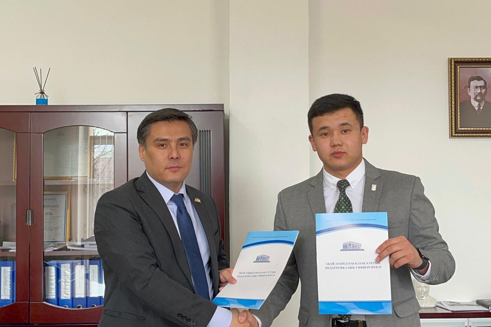 Білім беру сапасын қамтамасыз ету мақсатында бірлескен іс-шараларды өткізу және жан-жақты ынтымақтастықты жүзеге асыру мақсатында әріптестік пен өзара ынтымақтастық туралы тиісті меморандумға Абай университетінің әлеуметтік даму жөніндегі проректоры Мақсат Жақауов мен «Қазақстан студенттерінің Альянсы» Республикалық студенттер қозғалысы» Қоғамдық бірлестігінің төрағасы Ұлан Наукенов қол қойды.