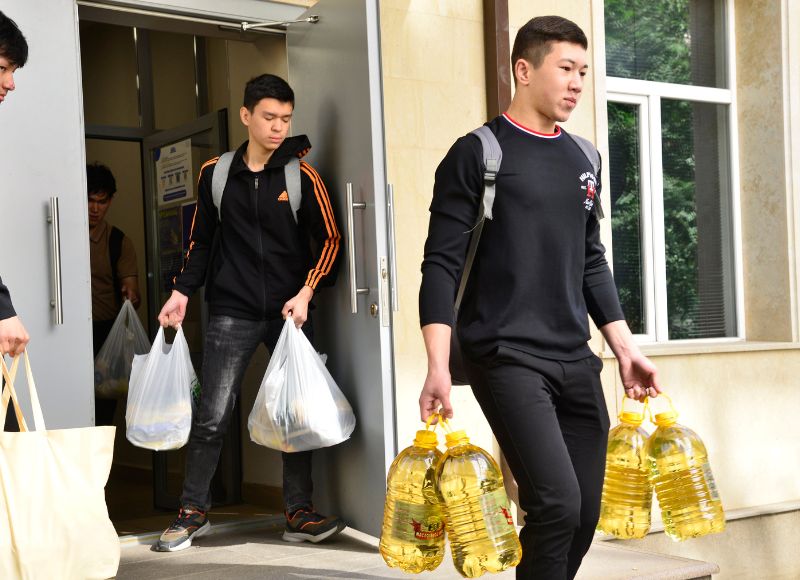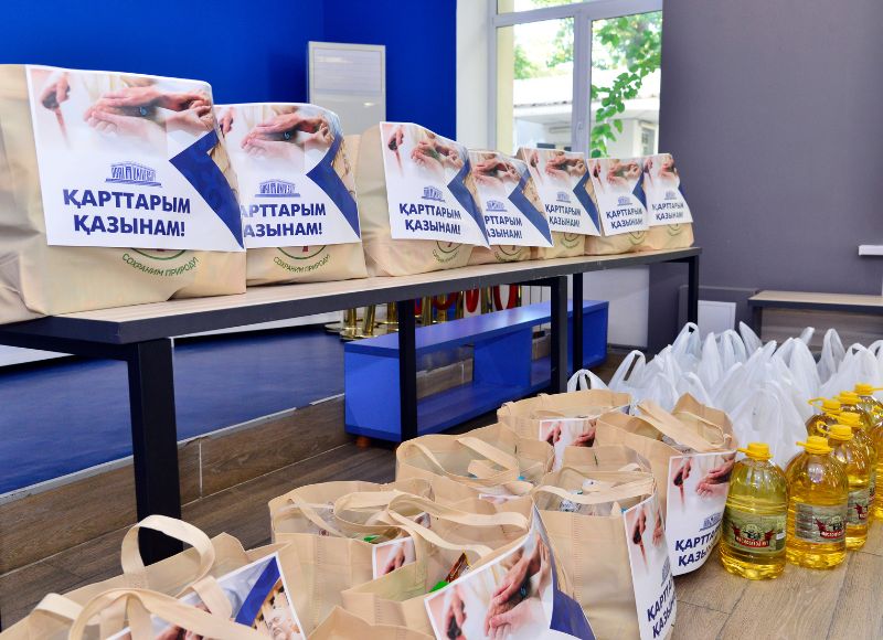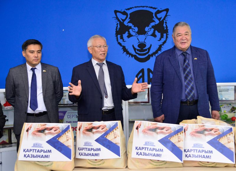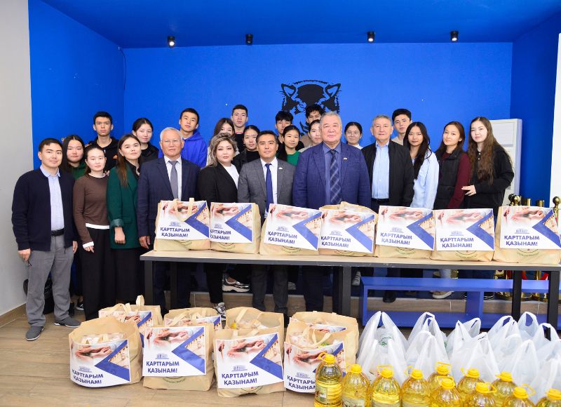 Іс-шараға әлеуметтік даму жөніндегі проректор Мақсат Жақауов, Ардагерлер кеңесінің төрағасы Берікжан Әлмұхамбетов және Кәсіподақ ұйымының басшысы Мұхтар Ибраймов пен университет қызметкерлері қатысып, университет қабырғасында ұзақ жылдар бойы қызмет атқарған, Ұлы Отан Соғысының, еңбек майданы және тыл ардагерлеріне, ауған соғысының ардагерлеріне арнайы әзірленген азық-түлік себеттері мен сый-сияпаттарды табыстады.