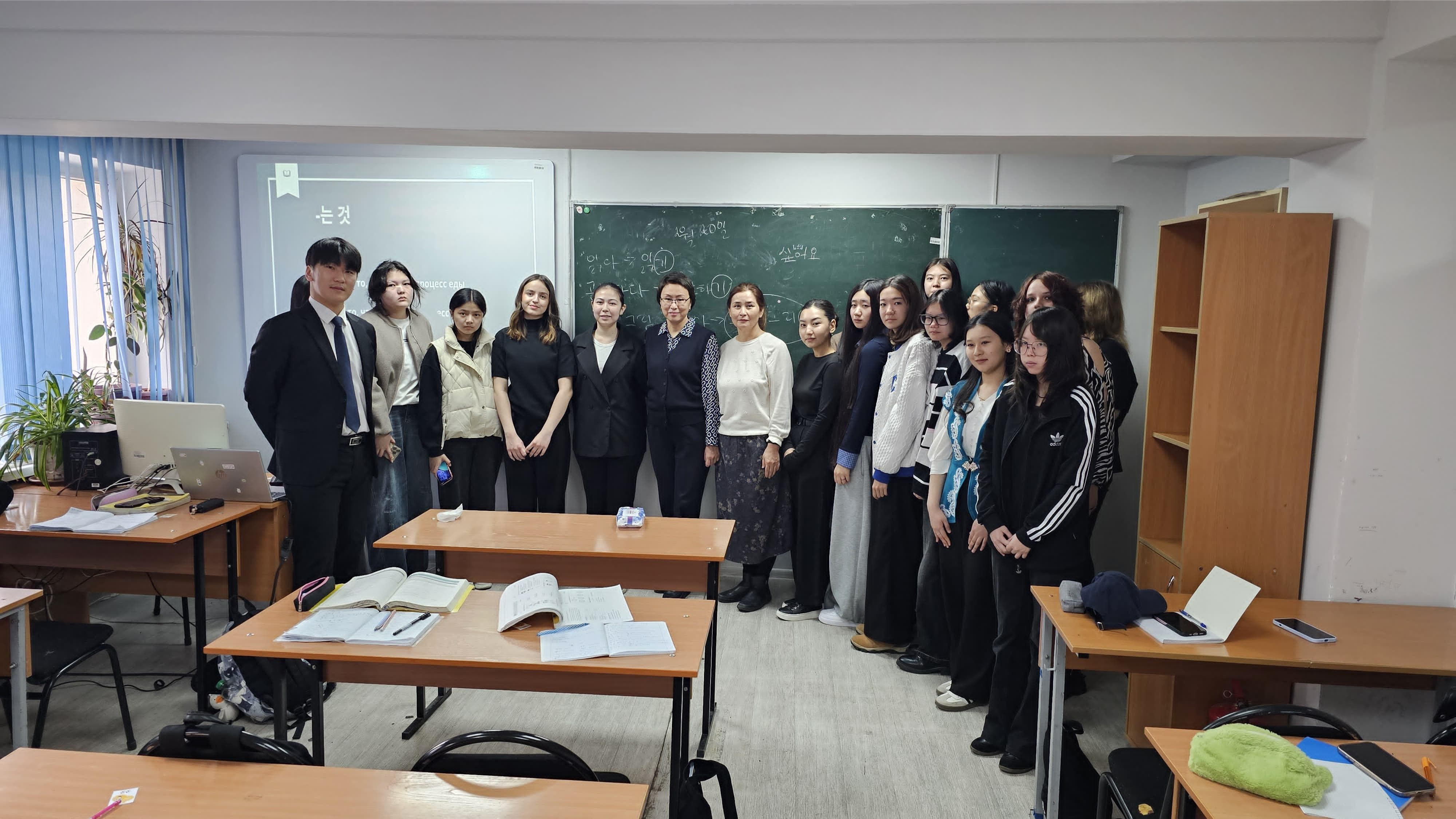 Практика базасында студенттер ашық сабақ өткізді Абай атындағы Қазақ ұлттық педагогикалық университетінде өткен ашық сабақтар апталығы аясында 20 ақпан күні 4-курс студенті Шоманова Аружан Абылай хан атындағы Шетел тілдері колледжі базасында ашық сабақ өткізді. Сабақ достық әрі іскерлік атмосферада өтті. Ашық сабаққа стратегия және интернационалдандыру жөніндегі проректор Искакова Айгүл Төлеутайқызы, корей тілі оқытушысы Бурмистрова Е.В., сондай-ақ Ли Джи Хё қатысты. Сабақ барысында жасанды интеллект бағдарламалары мен ойын элементтерін қолдану арқылы интерактивті оқыту әдістері пайдаланылды. Айгүл Төлеутайқызы сабақтың жоғары деңгейде ұйымдастырылғанын атап өтті. Оқыту үдерісі үш тілде (корей, қазақ, орыс) жүргізіліп, бұл студенттердің жаңа оқу материалын тиімді меңгеруіне оң ықпал етті. Шығыс филологиясы және аударма кафедрасының аға оқытушысы Е.В. Бурмистрова колледж басшылығына ынтымақтастықты әрі қарай жалғастыруды ұсына отырып, университеттің 4-курс студенттеріне тәжірибе базасын ұсынғаны үшін алғысын білдірді.
