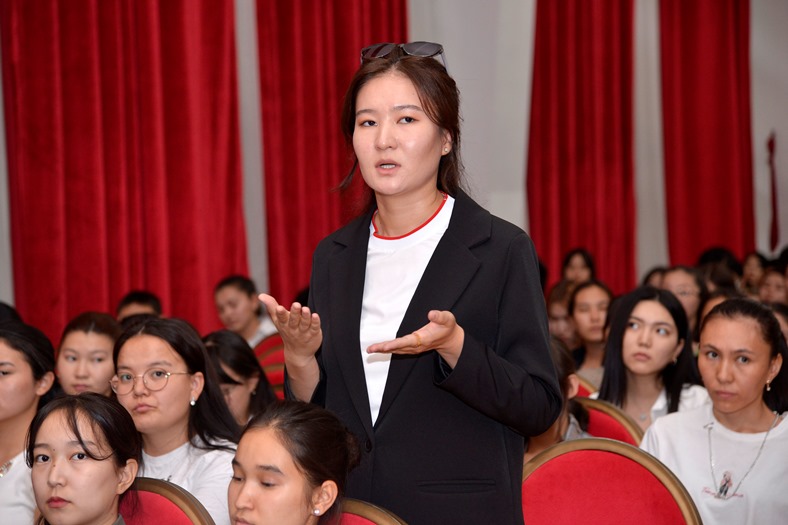 Инклюзивтік білім берудің тәжірибелі сарапшысы Айкерім Кудеринова студенттерге инклюзивтік білім берудің ерекшеліктері мен мүмкіндіктері туралы жан-жақты айтып, өз тәжірибесімен бөлісті. Сонымен қатар, университет студенттері еркін форматта педагогикалық іс-тәжірибе барысында жинақтаған тәжірибелері туралы айтып, жалпы және инклюзивті білімге мұқтаж балалармен қалай жұмыс істеу керектігі туралы көтерілген сұрақтар бойынша өз пікірлерін білдірді.