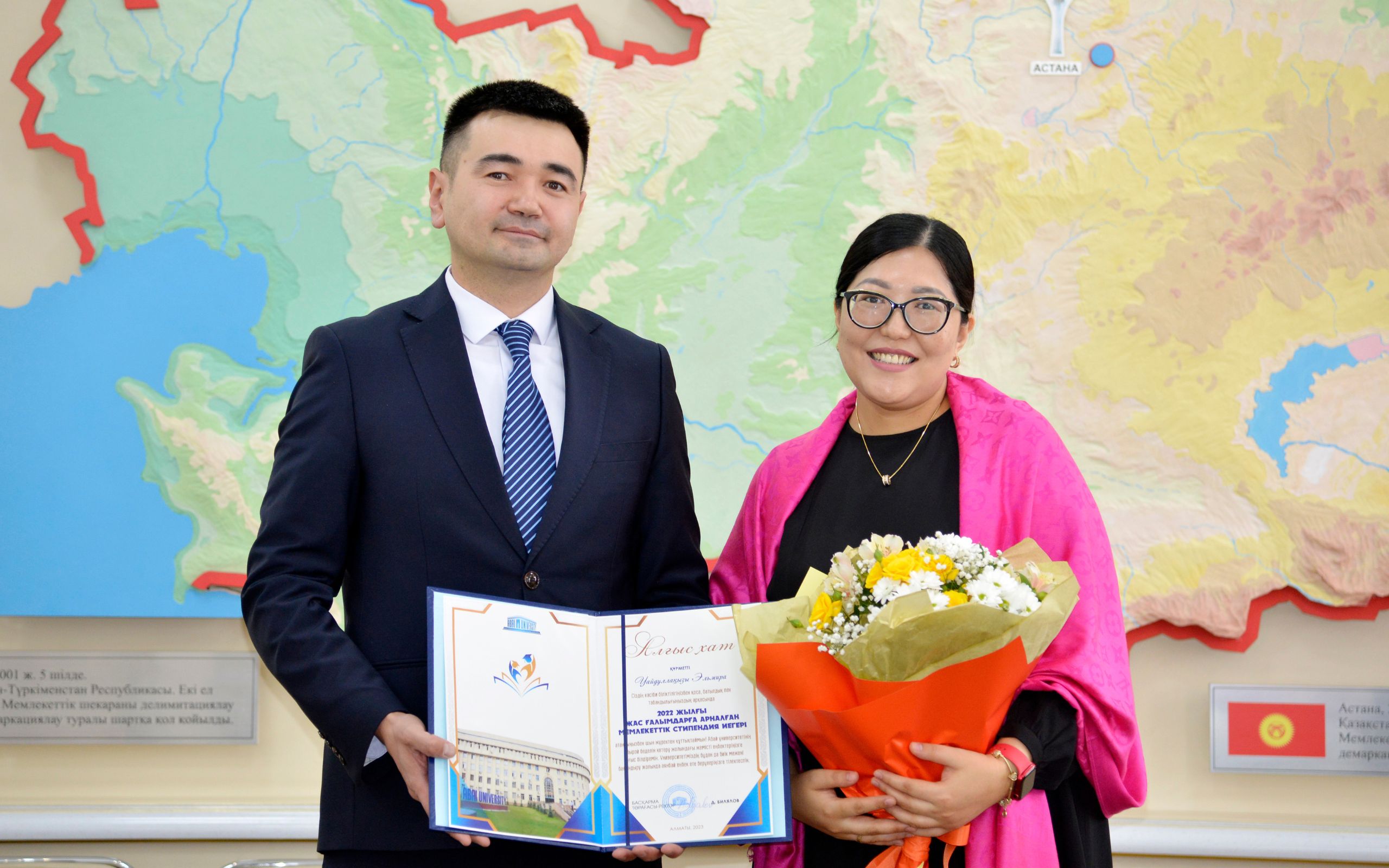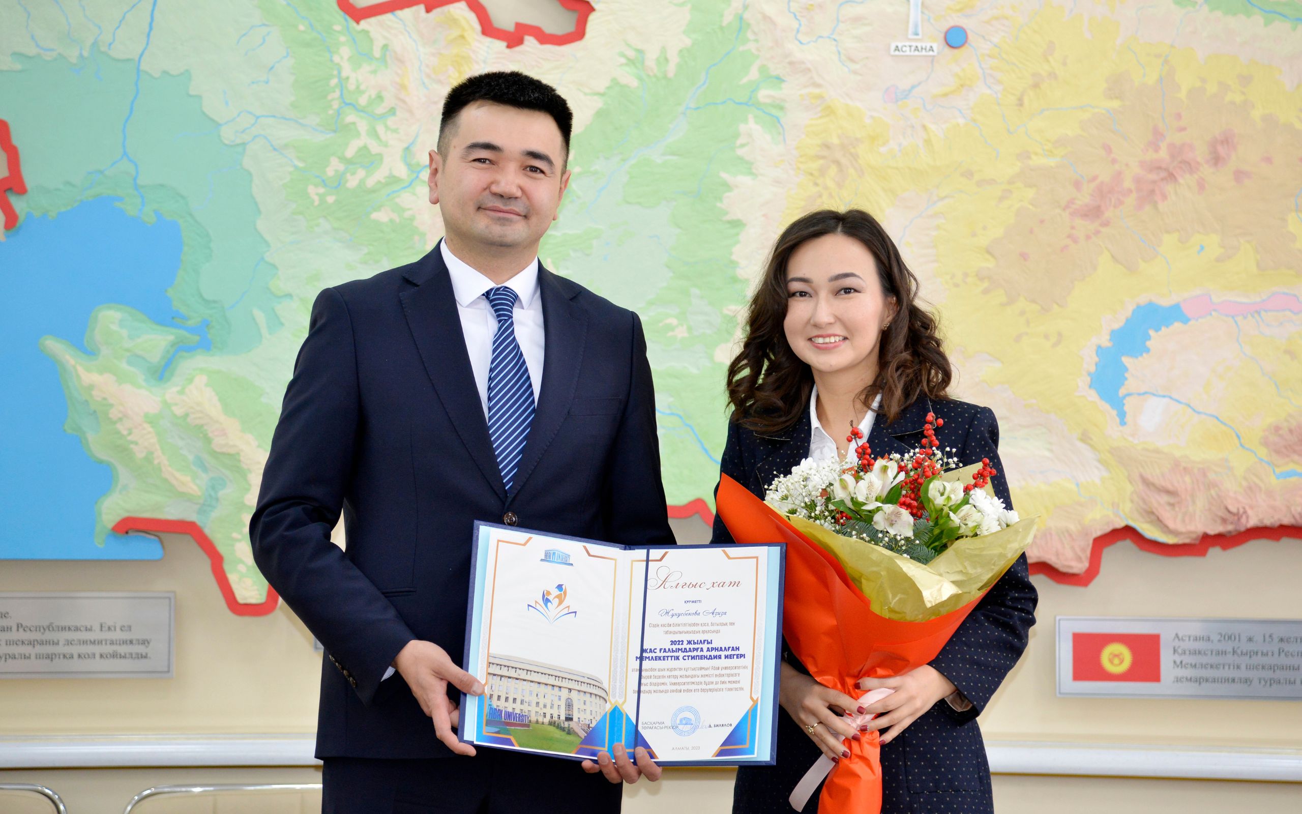 Қос марапат иегерлері профессор Қ.Есенова («Үздік ғылыми қызметкер», мемлекеттік стипендия иегері) мен PhD Ш.Лайсхановқа («ЖОО үздік оқытушысы», талантты жас ғалымдарға арналған ғылыми стипендия иегері); Гуманитарлық ғылымдар саласындағы үздiк ғылыми зерттеуі үшiн Ш.Уәлиханов атындағы сыйлық иегері Ж.Ішпекбаевқа, Мемлекеттік ғылыми стипендия иегерлері, жетекші ғалымдар Ж.Хамзина мен С.Абишеваға, талантты жас ғалымдарға арналған ғылыми стипендия иегерлері Э.Айтеноваға, А.Жунусбековаға, Э.Уайдуллақызына, сондай-ақ, «ЖОО үздік оқытушысы - 2022» байқауының жеңімпаздары О.Абишева мен А.Рысқанға университетіміздің абырой беделін көтеру жолындағы жемісті еңбектері үшін алғыс хаттар табысталды. Алдағы уақытта бұдан да биік межені бағындыру жолында аянбай еңбек ете берулеріне тілектестік білдірді.