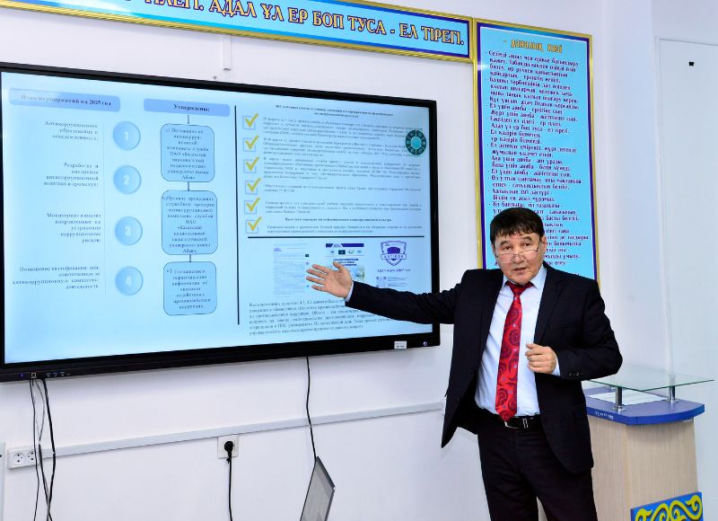 «Сыбайлас жемқорлықпен күрес – баршаның ісі» ақпараттық дәрісі Дене шынықтыру және бастапқы әскери дайындық факультетінде өтті 2025 жылдың 19 ақпанында Дене шынықтыру және бастапқы әскери дайындық факультетінде «Сыбайлас жемқорлықпен күрес - баршаның ісі» атты дәріс өтті. Дәрісті сыбайлас жемқорлыққа қарсы комплаенс-қызметінің жетекшісі Құрманғазы Мәдиев өткізді. Дәріскер сыбайлас-жемқорлықтың ірілі-ұсағы жоқ екенін түсіндіре келе, дайындалған бейнероликтерден мысал келтірді. Сондай-ақ, егер кез келген тұлға заңсыз әрекеттердің куәгері және қатысушысы болса, қорқытып пара алса немесе оған пара ұсынса, өзін қалай ұстау керектігі туралы да айтылды.