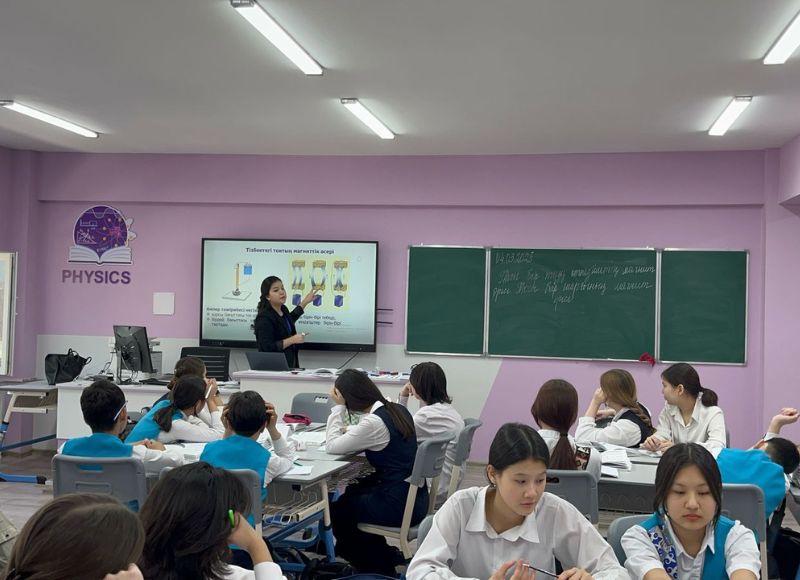 Педагогикалық практика нәтижесі бойынша ашық сабақ 2025 жылдың 4 наурызында Абай атындағы ҚазҰПУ математика, физика және информатиканы оқыту әдістемесі кафедрасы «6В01504 - Физика» білім беру бағдарламасының 4 курс студенті Балзия Сулейменова ашық сабақ өткізді.