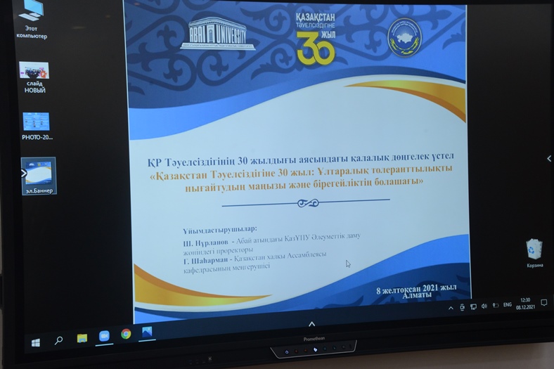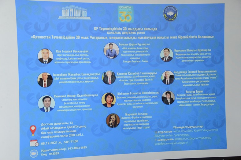 «Қазақстан Тәуелсіздігіне 30 жыл: Ұлтаралық толеранттылықты нығайтудың маңызы және бірегейліктің болашағы» қалалық дөңгелек үстелі |
