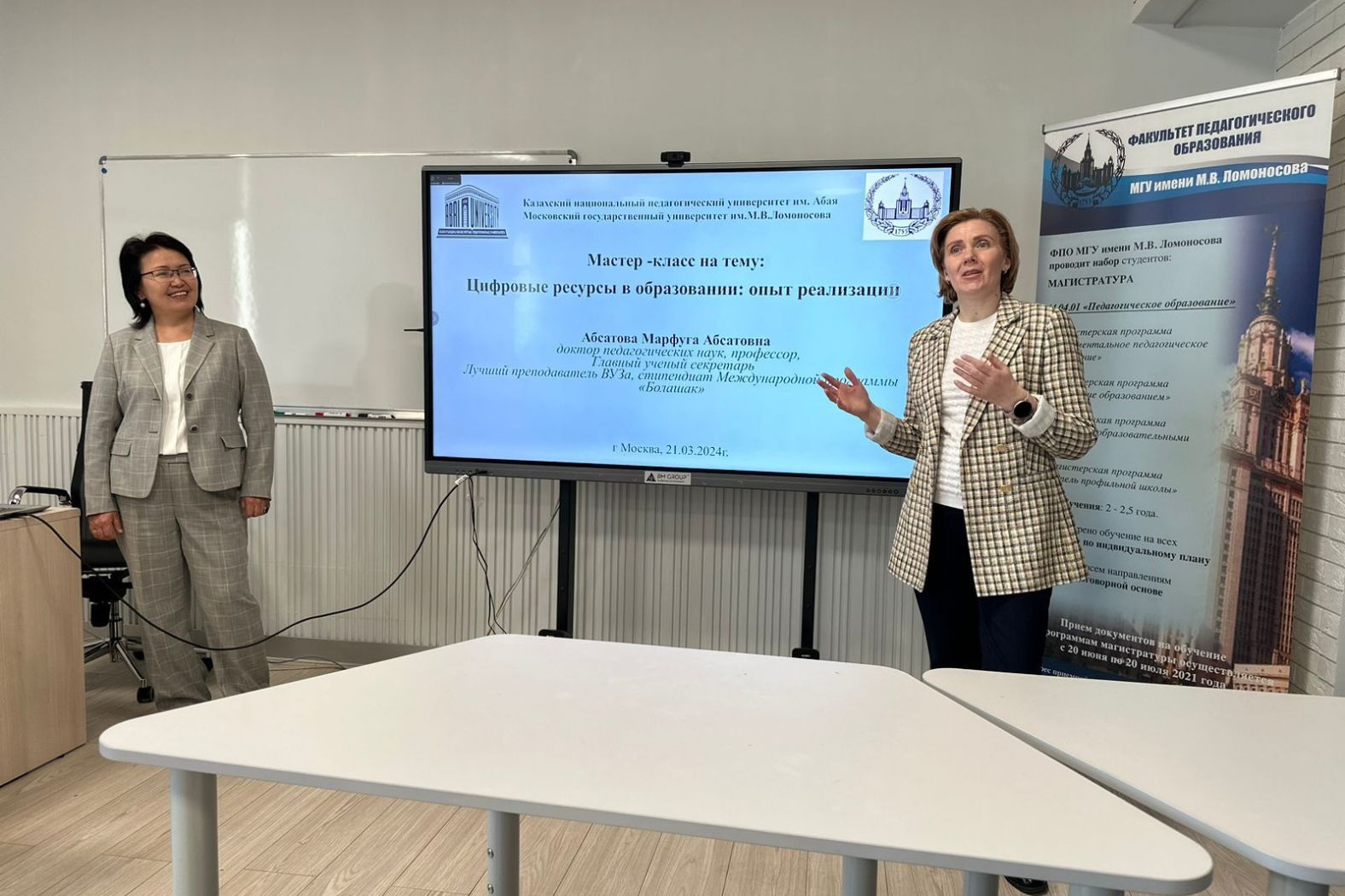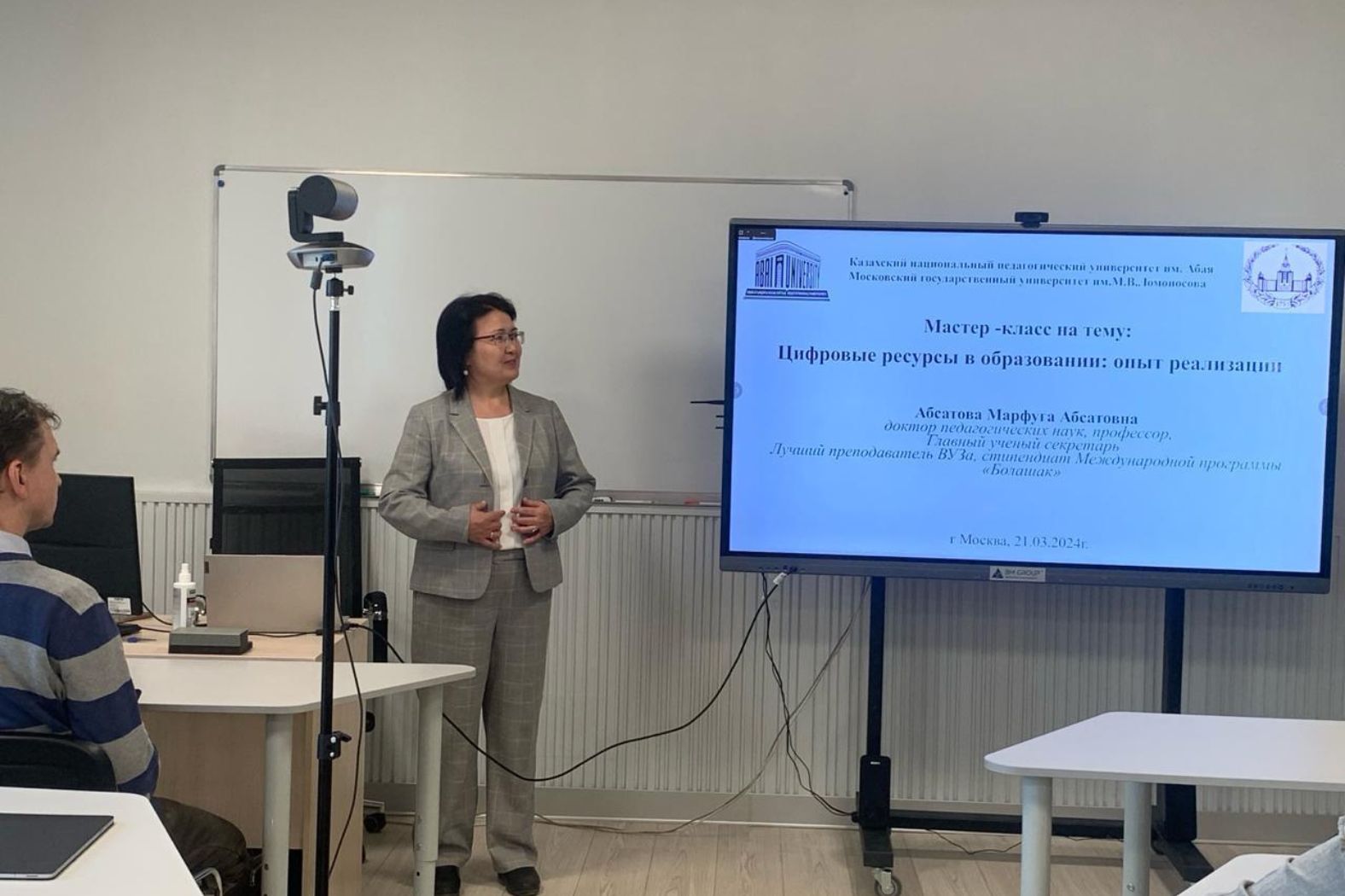 2024 жылдың 21 наурызында Абай атындағы Қазақ ұлттық педагогикалық университетінің профессоры Абсатова Марфуга М.В.Ломоносов атындағы Мәскеу мемлекеттік университетінде "Білім берудегі цифрлық ресурстар: іске асыру тәжірибесі" тақырыбындағы шеберлік сыныбын өткізді.