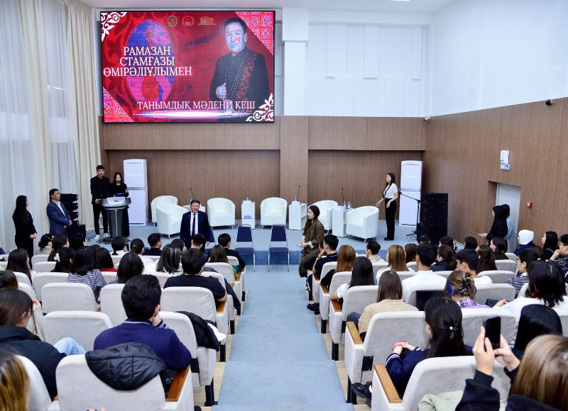 Кездесуде белгілі өнер қайраткерімен қазақтың дәстүрлі ән өнерінің дамуы, қазіргі жағдайы және жеке шығармашылық жолы туралы сұхбат жүргізілді. Сондай-ақ, мәдени танымдық кеште сөз алған Өнер факультетінің деканы Кәрім Байқұтов Рамазан Стамғазиевтің шығармалары мен әндері ұлттық өнерімізді тереңнен танып, оның құндылықтарын жас ұрпаққа жеткізіп, қазақ халқының мәдениетін дәріптеп жүрген тұлға екендігін атап өтті. Іс-шара соңында студенттер кеш қонағымен естелікке суретке түсіп тарқасты.