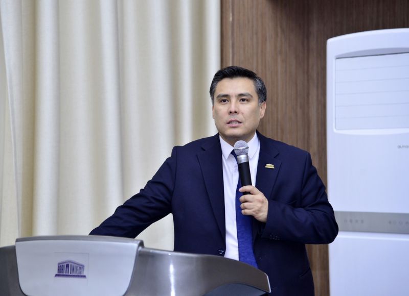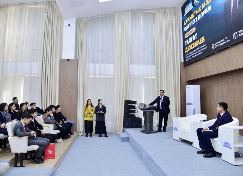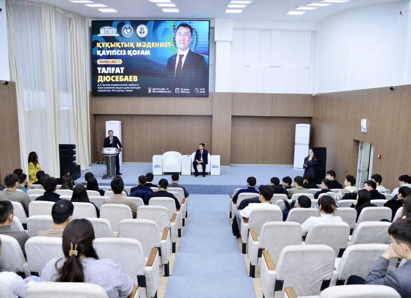 21.02.2025 «Құқықтық мәдениет – қауіпсіз қоғам» дәрісі 2025 жылдың 20 ақпанында Психологиялық қолдау қызметінің ұйымдастыруымен «Құқықтық мәдениет қауіпсіз қоғам» тақырыбында дәріс өтті. Дәрістің мақсаты - студенттердің құқықтық мәдениеті мен саяси таным белсенділігін арттыру, адамгершілік ізгі қасиеттер мен ар-ождан бостандығына, адалдық пен мейірімділікке баулу арқылы құқықтықтық тәрбие беру және студенттер арасында харассмент, лудомания, буллинг оқиғаларының алдын-алу. Дәрісті Абай университеті Заң факультетінің түлегі, Заңгер, PhD доктор, Д.А. Қонаев университетінің Тәрбие ісі және әлеуметтік-мәдени даму жөніндегі проректоры Талғат Дюсебаев жүргізді.