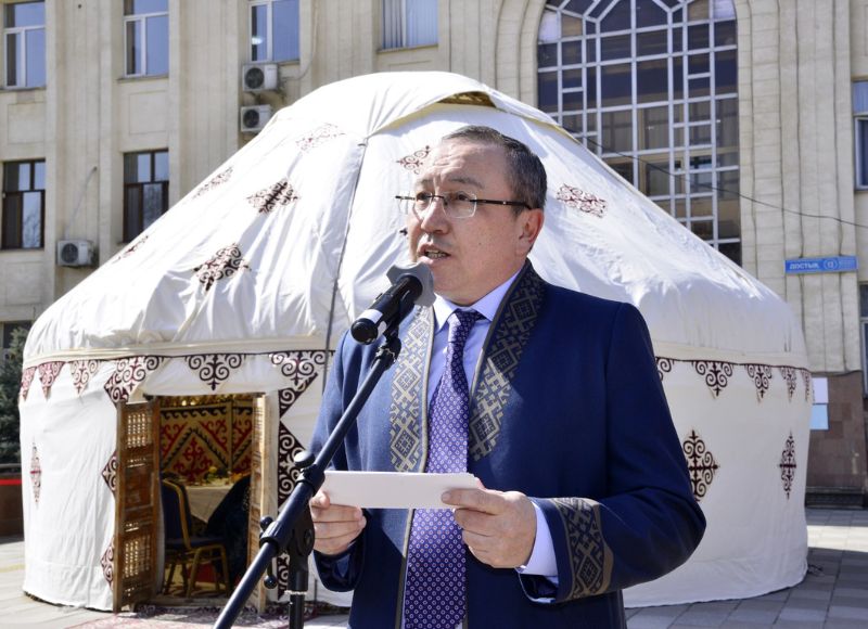 «Тәуелсіз ел атануымыздың арқасында өшкеніміз жанып, үзілгеніміз жалғасын тауып, жоғымыз түгенделуде. Ұлтымыздың рухани қазынасы саналатын асыл мұраларымызды жас ұрпаққа насихаттаудың да жарқын үлгісі - осы бірлігі жарасқан бейбіт елімізде көрініс табуда. Қараусыз қалған мазарды шөп басады, қынаптан суырмаған қылышты тот басады деген аталы сөз бар. Олай болса, Наурыз сияқты салт-дәстүріміздің мәртебесін үстем ету - баршамыздың ортақ парызымыз деп білемін. Самарқанның көк тасы еріген көктемнің осы бір күнінде сіздерге дүниенің бар жақсылығын, ырысы мен ынтымағын тілеймін. Наурыз мейрамы құтты болсын!», - деді ректор.